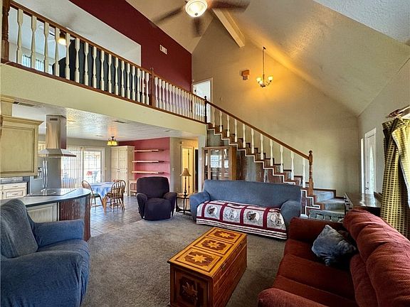 Scenic acresCovered front porchInviting interiorBack patioDurable metal roofWarm natural finishes