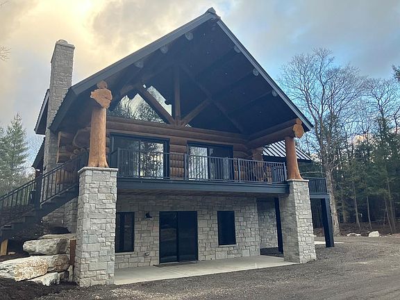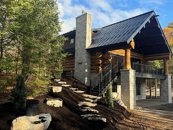 This modern log home is set upon a ridge in a clearing, with 20 acres of native woodland surrounding it. It's a tranquil and private setting for your family and friends to gather, yet located only a short, two-mile drive to downtown Egg Harbor. Ideal for a year-round or second home, with excellent rental income potential via Airbnb. You'll appreciate the quality materials and features of this impressive handcrafted home. While the log walls and roof were constructed in 2010, this is essentially a new home, with all new windows, doors, flooring, cabinets, appliances, decks and patio, stonework, plumbing, electrical, lighting, HVAC, well and septic completed in 2024.