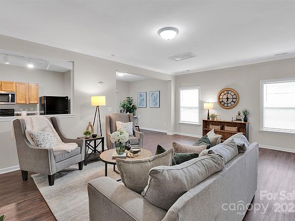 Welcome to this charming cut-de-sac home in the heart of the Buckleigh community! Style meets function with LVP flooring on both floors, a great room w/ fireplace, a sunny dining area, and neutral paint throughout. Kitchen features black appliance package and the refrigerator is included! Upstairs you’ll find a loft w/ custom cabinets, spacious secondary bedrooms, and a huge primary suite - NEW dual vanity, garden tub, standing shower, and walk-in closet with custom shelving. This quiet neighborhood, only minutes from I-485, boasts walking trails AND direct access to Reedy Creek Park (playgrounds, fishing, hiking, and more). This home also qualifies for 100% FINANCING, NO PMI & 20K in closing costs through First National Bank!!!