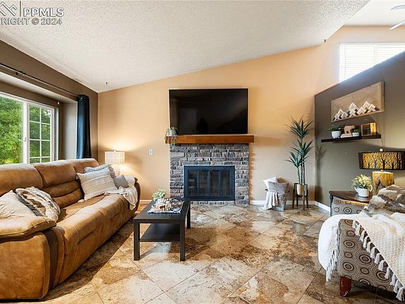 Welcome to this beautifully maintained 3-bedroom, 2-bath tri-level home! From the moment you arrive, you'll be greeted by a covered front porch and a bonus brick front patio area, ideal for enjoying your morning coffee or greeting guests. Step into the main level and be captivated by the great room, featuring vaulted ceilings, tile flooring, and a cozy wood-burning fireplace. The unique design leads you up into the kitchen, which overlooks the great room and offers easy access to the covered deck. Here, you can take in breathtaking mountain views while enjoying the fresh Colorado air. The upper level is also where you'll find a huge primary suite with an adjoining bathroom and a walk-in closet, offering a peaceful sanctuary at the end of the day. Stepping down to the lower level, a family room provides additional living space with 2 more bedrooms, a 2nd full bath and a laundry space for added convenience. This home is climate-controlled with air conditioning, ensuring year-round comfort. The outdoor living spaces are equally impressive with a generously sized, fully fenced backyard. Including a beautiful retaining wall, separate dog run area, and a flagstone 15x20 backyard patio perfect for entertaining or simply relaxing. The large adjoining property behind the home provides a sense of open space and privacy, making it feel like your own private retreat. Located just minutes from Fort Carson and Peterson Space Force Base, with easy access to I-25, Colorado Springs Airport, and downtown Colorado Springs, this home offers the perfect blend of convenience and serenity. Plus, outdoor enthusiasts will enjoy the proximity to the trails at Bluestem Prairie Open Space and Big Johnson Reservoir. Don't miss your chance to own this incredible home—schedule your showing today!