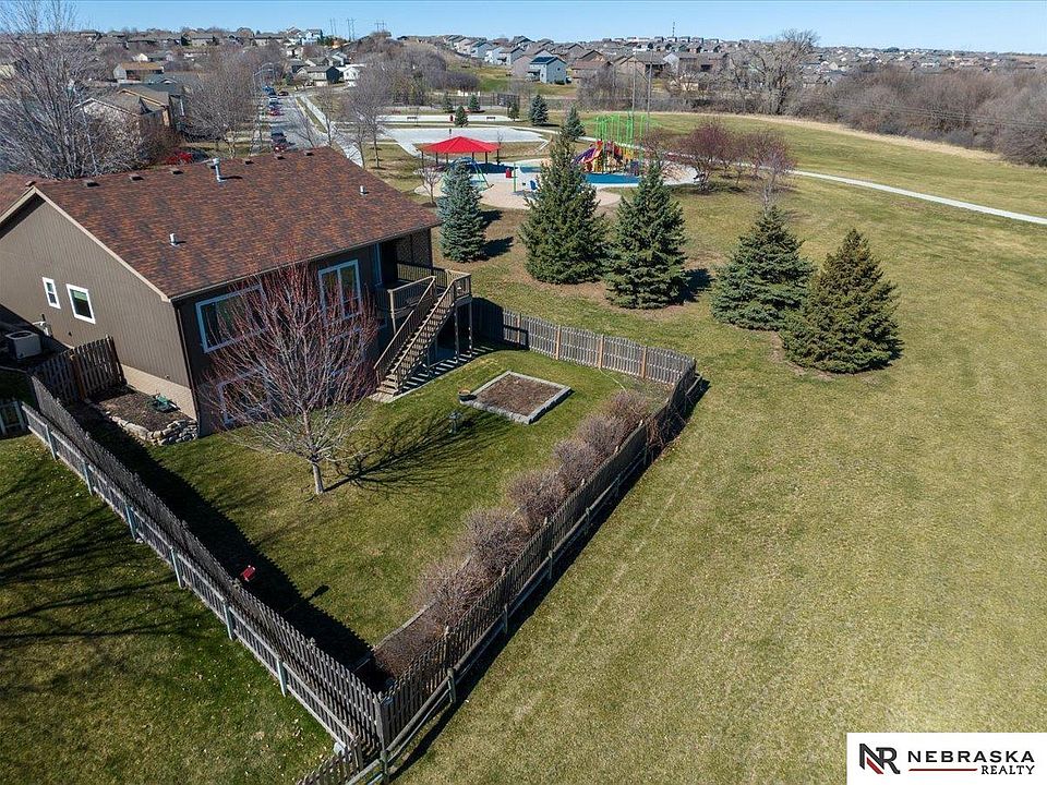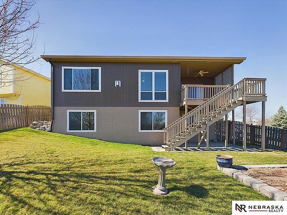 Welcome Home to this 3 Bed, 3 Bath, Ranch in Elkhorn School District. This property sits on an amazing lot that backs to common area & trees (no rear neighbors). Home is also adjacent to Quail Run park & walking trails to Flanagan Lake! Spacious, open concept layout with main floor laundry. Living room boasts beautiful bamboo flooring, vaulted ceiling and gas fireplace. Primary bedroom offers bamboo flooring, walk-in closet, and private ensuite with whirlpool tub separate from shower and dual sink vanity. Walk out basement provides tons of natural light with 3 large egress windows, a 3rd bedroom with it's own bathroom, and a huge storage room that is separate from utility room. Backyard is equipped with a full, wood, privacy fence, lower level walk out patio, and a covered deck. All appliances included. Newer Roof & Triple paned windows. Radon mitigated. Close to Flanagan Lake, shopping, restaurants, entertainment, etc. Seller has filed insurance claim to have roof reolaced.