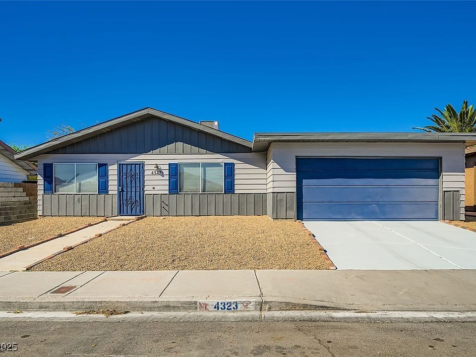 Completely renovated and move-in ready! This stunning 4-bedroom, 2-bath home at 4323 Paramount St. has been updated from top to bottom and is located in a quiet neighborhood with no HOA. Enjoy peace of mind with a brand-new roof, new HVAC system, and fresh interior and exterior paint. Inside, you’ll find laminate flooring throughout, a beautifully upgraded kitchen with new cabinets, countertops, and stainless-steel appliances, plus modern bathrooms with stylish finishes. The spacious two-car garage adds convenience, and the home’s location can’t be beat—just minutes from the Las Vegas Motor Speedway and Nellis Air Force Base. A perfect blend of comfort, quality, and location—schedule your showing today!