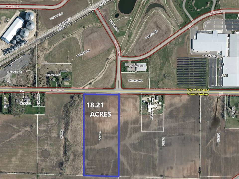Located on State Road Hwy 91 in the Town of Nekimi this vacant land development parcel is planned for light industrial use. Close to Interstate 41, Hwy 44, Hwy 21 and Hwy 26 this property is directly across from the SW Industrial Park in Oshkosh Wisconsin. Property can remain in the Town of Nekimi and will require private well for water and septic system. Large rectangular shaped property ready for your business plans !
