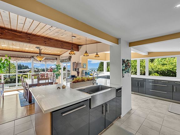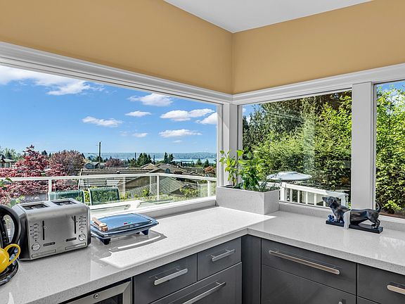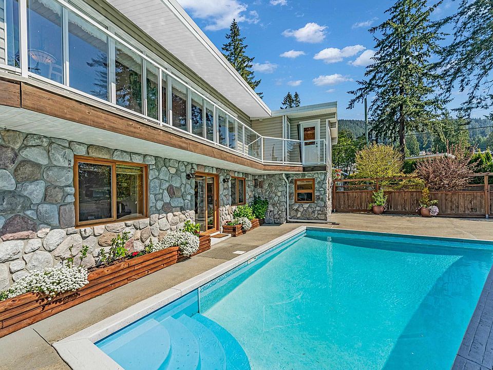 Welcome to this beautifully maintained five-bedroom, 3.5 bathroom residence in one of North Vancouver's most sought-after neighborhoods. This exquisite property perfectly blends elegance, comfort, and functionality, making it a sanctuary for families and entertainers. Enjoy a spacious, light-filled layout, featuring high-quality finishes, hardwood floors, and large windows framing beautiful water, city, and Mountain views. The gourmet kitchen is a chef's dream, boasting premium stainless-steel appliances, quartz countertops, and ample cabinetry. The lower level offers a fully finished one-bedroom suite. Outside, the private landscaped garden features a stunning solar-heated pool and a relaxing dry sauna, perfect for unwinding on warm summer days.