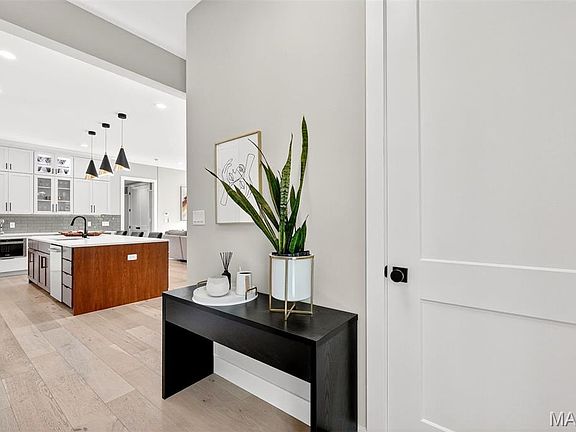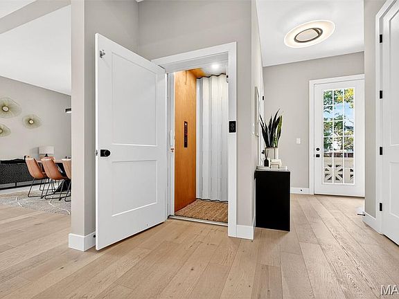 At the end of a historic, tree-lined street in the CWE, a strikingly modern residence reveals itself - sleek, sophisticated, yet echoing the grandeur of the mansion that once stood on these grounds. The exterior pays homage to history, while the interior offers a fresh, livable modernity. This is more than a condo; it’s a statement, crafted for those who crave design, convenience & a touch of drama. The main level features soaring 10-ft ceilings & hardwood floors. The primary suite, tucked for ease, blends indulgence with comfort: a tray ceiling with backlighting, spa-inspired bath w/ freestanding tub, glass shower w/ body sprays & digital controls, dual vanities w/ lighted mirrors, custom closet & a private covered balcony. The living area flows around a linear gas fireplace with custom tile, opening to a chef’s kitchen with floor-to-ceiling cabinetry, matte quartz counters, six-burner dual-fuel range & wine/beverage center. Luxury lives in the details: under and in-cabinet lighting, full-height backsplash, microwave drawer & discreet Sweep-O-Vac. A private office completes the level. Upstairs, two bedrooms and a loft lead to the crown jewel: a 24x24 rooftop terrace with sweeping city & Arch views, complete with gas and water lines for unforgettable evenings. Every detail was chosen with intention - private elevator, EV charging ready, heated garage, UV air purification. With two garage spaces, a pool, dog run & manicured grounds, the lifestyle is as effortless as it is beautiful.