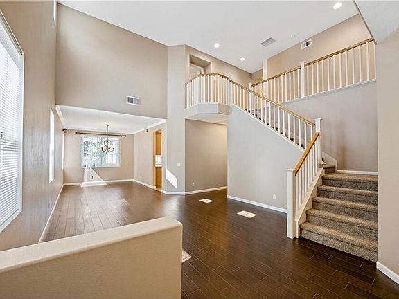 PAID OFF SOLAR. BIG SAVING ON ELECTRICITY BILL. 4 bedrooms (one downstairs), 3 full baths (one downstairs). 1 Large loft that can be used as an office, game room, etc. 3 car garage. Newer HVAC system with HEPA filter. This gorgeous home is located in the desirable Paloma Del Sol community: features pools, spas, sports courts, parks, tot lots, and more! This fantastic property is located on a quiet cul-de-sac with no rear neighbors. Gorgeous rich wood-tile flooring adorns the formal living and dining rooms along with warm neutral paint and great natural lighting from the multiple windows. At the back of the home sits a spacious kitchen with stainless steel appliances, recessed lighting, tile flooring, and an island with storage. Open to the kitchen is a welcoming family room where you will enjoy cozy nights by the fireplace and make the perfect spot to entertain! Double door entry. Beautiful neutral carpet upstairs. The master suite is sure to please with a ceiling fan, dual sinks, granite counters, walk-in closet, soaker tub, and separate shower. 2 additional bedrooms upstairs with easy access to a full bathroom with dual sinks, both with ceiling fans. The backyard has endless options and has a patio with cover for entertaining! Near excellent schools, great shopping, and the popular Temecula Wine Country. Owner pays Association fee. Renter pays for all utilities. Small pet allowed if approved will have a small fee. Renter responsible for all utilities. Owner pays for HOA only. Lease duration one year and up.