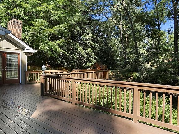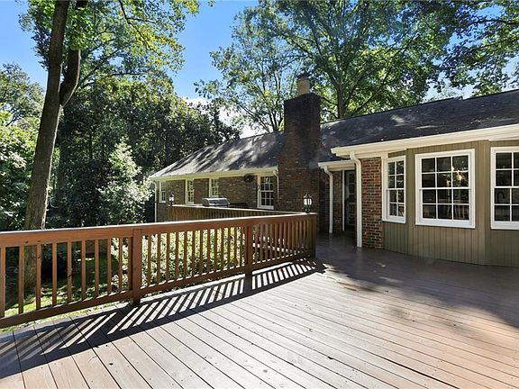 Beautiful ranch on a finished basement in a swim/tennis neighborhood in Dunwoody. Enjoy walkability to Brook Run Park and schools and public transportation. Sits on acre lot, fenced backyard with beautiful landscaping, large deck and playground set, large flat driveway. Hardwood floors, updated trim detail, flat ceilings, modern interior fixtures, large windows, 2 brick fireplaces, white cabinetry, tile backsplash, granite counters, gas range, SS appliances, vent hood, and newer carpet in basement. The bright and open floorplan includes entry foyer, formal living, formal dining, large family room/den, additional keeping room, open kitchen with breakfast bar, walk -in pantry, laundry room, and tons of storage closets. Master bedroom has custom closet shelving, master bathroom with granite double vanity, and large shower. Two good size secondary bedrooms. Finished basement with recreation room, custom home gym space, renovated bathroom with shower. A large 2+ car garage, huge rear deck with views to the flat backyard. Smart irrigation system, house water filtration system, and 2 Nest thermostats. Very close to I-285, I-85, HWY 400, Dunwoody/Sandy Springs/Perimeter mall, Marta transportation, shopping, parks, restaurants, Starbucks, and more.