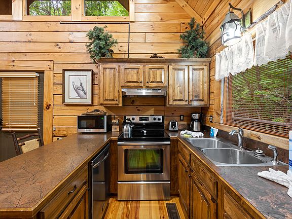 Luxurious 1 bedroom, 1 bathroom cabin with a sizable loft for additional sleeping/recreational space! The hot tub, hot water heater, HVAC unit, washer, and dryer have all been replaced within the last 2 years! The main level features an open-concept layout that includes the great room & full kitchen, ideal for both relaxation and entertaining. Just beyond the great room is the luxurious master king suite, complete with an en suite bathroom & a jacuzzi tub. The furnished wrap-around deck is equipped with a hot tub, charcoal grill & an outdoor log table with ample seating. The loft area is outfitted with a queen size bed, pool table, and a private covered deck. The Great Smoky Mountains National Park is only 1.2 miles away from the cabin! If you're seeking a clean & lavish STR in a private wooded setting then this is the one for you! Call & schedule your showing today!