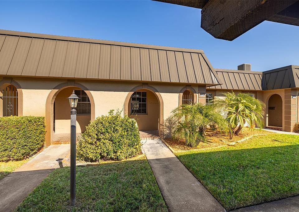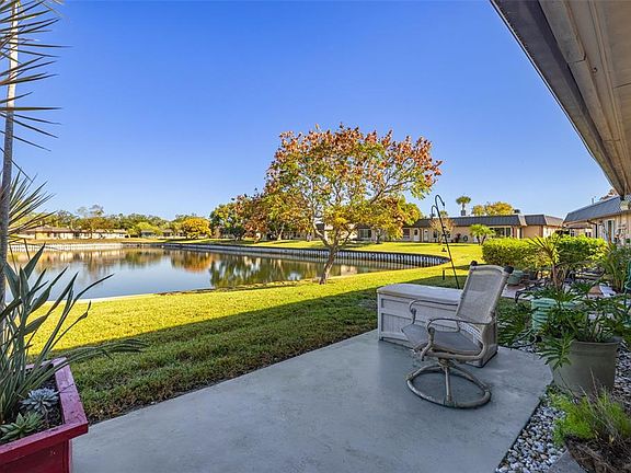 Welcome to this picture-perfect home in the 55+ gated community of Gardens Beacon Square IV. This beautiful condo has a serene view of Geyser Lake, one of the best in the association! This contemporary 2-bedroom, 1 bath condo features a brand-new remodeled kitchen with quartz countertops, trending blue cabinetry, a deep basin sink, brand-new stainless-steel appliances and extra pantry storage! Other updates include ceramic tile flooring, brand new carpeting in the bedrooms, a large walk-in shower with sliding glass doors, updated vanity, lighting and fixtures. Other features include a pull-down stair access to the attic for more storage, inside laundry area, and ceiling fans the bedrooms and Florida room. The condo building has recently been repainted and has a newer roof. Gardens of Beacon Square is a maintenance free gated community which features a heated pool & recreation center with many social activities. Cable, internet, water, sewer and trash are all include in the condo fee. This gated community of Garden of Beacon Square is just minutes from Gulf beaches, shopping, dining, and medical centers. Schedule your showing today!