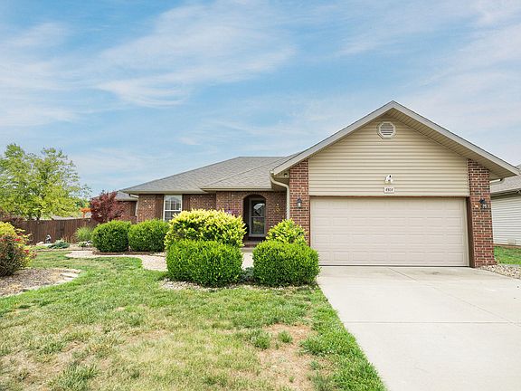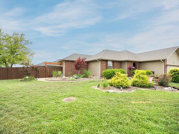 This gorgeous brick-front, ranch-style home with an attached 2-car garage boasts a beautiful low-maintenance yard framed in attractive landscaping set up with a sprinkler sytem for easy watering. This home is also located in the Willard School District. Step inside the covered front porch to be greeted by a cozy entryway with stunning recently installed hardwood flooring leading to an open living-room with an all neutral paint scheme and an open layout set below tall ceilings. Overlooking the brightly lit space is a beautiful kitchen with dark wood cabinets, an island with a built-in bar and stainless steel farmhouse sink matching the all-stainless steel appliances. Just off the kitchen is the entry leading in directly from the garage. The dining area is set below large windows filtering in natural lighting throughout the kitchen. Tucked away in the hallway is the spacious master suite with natural lighting from the windows, and a private bath with two walk-in closets and a shower. The second shared bathroom is located near the additional two bedroms, one with a lovely accent wall, and each with spacious closets and large window. The laundryroom is straightforward with a built-in shelf, washer and dryer hookups, and some room for small storage. The door just off the living room opens up to a beautiful patio, recently updated with composite decking with small steps down to the pebble rock walkway leading to backyard paradise. Here you'll find that the sweeping landscaping accentuates a zoned backyard with a seating area beneath the shade of a lovely birch tree near the above ground swimming pool and privacy fencing all around. Don't miss the gorgeous landscaping in the front yard with a peaceful functioning Koi pond. Nestled in a lovely neighborhood, this home is also located near Rutledge Wilson Farm Park with West By Pass and HWY 44 nearby for fast commutes and convenient access to shopping, restaurants, entertainment, as well as a short drive to the airpor