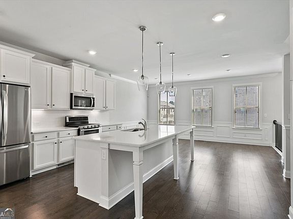 Built in 2021, this luxury 4-bedroom, 3.5-bath townhome in a gated community near Perimeter/Dunwoody will be professionally cleaned and Move-In ready by April 1. The home offers quick access to Perimeter Mall, Sandy Springs, Buckhead, and Peachtree Corners, with convenient proximity to I-285, Highway 141, and SR 400. This three-level townhome features an open floor plan with 10-foot ceilings, large windows that provide abundant natural light, and hardwood flooring throughout, including all bedrooms. The gourmet kitchen boasts an oversized island, 42-inch cabinetry, granite countertops, a subway tile backsplash, stainless steel appliances, and a walk-in pantry. The family room includes a designer linear fireplace, adding warmth and style. A private deck off the back is perfect for outdoor dining or relaxation and will be cleaned prior to Move-In. The spacious primary suite includes a large walk-in closet, double vanities, and an oversized shower. Two additional upstairs bedrooms feature upgraded bathrooms and walk-in closets. The laundry room offers extra shelving, and a washer and dryer can be included upon request. The terrace level includes a full bedroom with a walk-in closet and ensuite bath, making it ideal as a guest suite, flex space, or bonus room. Community amenities include a resort-style pool with private cabanas, a grilling area, a firepit, a cornhole area, a playground, and wide streets with ample guest parking. The home is also near Assembly Studios Atlanta, the Farmers Market, H Mart, and shopping and dining at The Forum on Peachtree Parkway and Perimeter Mall. Corporate offices for State Farm, Mercedes-Benz, and IHG are also nearby. Located in the sought-after Dunwoody High School district. Schedule a tour today. Copyright Georgia MLS. All rights reserved. Information is deemed reliable but not guaranteed.