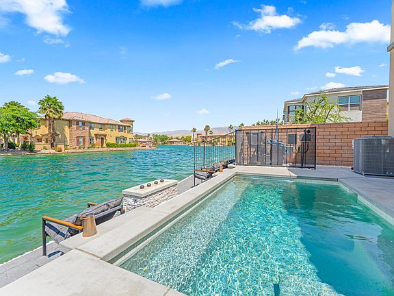 Terra Lago Lakefront estate recently built in 2022. Rare 5 bedroom 4 bath plus office that can comfortably sleep 14+ for maximum enjoyment or maximum income as a resort rental. The entire property has been renovated and set up to be a luxurious lakefront rental with designer furniture, huge TVs, arcade machines, and completely developed backyard. The large primary suite offers a private balcony overlooking the serene lake and pool, with panoramic mountain views that will take your breath away. Smart home features including smart entry, thermostats, EV charger, and solar panels on the roof. Residents enjoy resort-style amenities, including a community pool, clubhouse, fitness center, and an 18-hole golf course. Plus, HOA dues cover free Internet, cable TV, gym, community center, and 24-hour guard-controlled access. Whether you're looking for a luxury residence, an Airbnb, or a 1031 exchange, this home offers it all very close to Coachella Valley's best events, including Coachella Music Festival, Stagecoach, Polo, Palm Springs, Joshua Tree National Park, and major Casinos. Don't miss the opportunity to make this extraordinary lakefront retreat your own! Short-term rentals allowed--excellent investment potential!