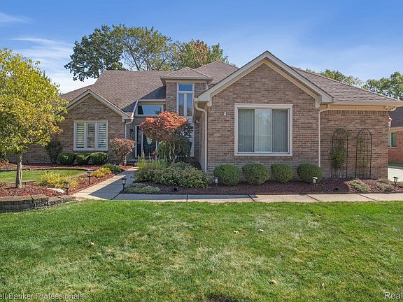STERLING HEIGHTS STUNNER with main level primary and mutigenerational flexibility. Welcome to this beautifully cared-for 4 bedroom/3 bath brick home in Sterling Heights, proudly offered by its original owner. The main level includes a versatile room that can serve as a fifth bedroom or private office. Designed with comfort, convenience, and versatility in mind, this residence features a sought-after primary bedroom on the main level, making it perfect for multigenerational living or those seeking single-level accessibility. Enjoy peace of mind with whole-house siding, gutters, and Magic windows backed by a transferable warranty. Luxury vinyl plank flooring in the kitchen, dining room, and optional fifth bedroom/office add both style and durability. A three-car garage with insulated garage doors is complemented by an extra-long and wide driveway, offering ample parking for guests or multiple vehicles. Step outside to discover two decks, a tranquil pond, and brick paver walkways that enhance the outdoor experience. The finished basement offers generous storage space and extra closets thoughtfully built throughout the home with organizers. Soaring vaulted ceilings and a cozy fireplace create a warm and welcoming atmosphere in the great room—perfect for gatherings or quiet evenings. This home blends timeless charm with modern practicality. Whether you’re hosting family, working from home, or simply enjoying the serene surroundings, this property offers the space and features to fit your lifestyle. Utica Schools.