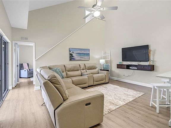 Unbeatable value in the heart of Naples! This exceptional villa offers one of the most unique and spacious floor plans in the area—priced well below comparable properties. Featuring two bedrooms plus a den, two bathrooms, and a private two-car attached garage, this home perfectly blends comfort, functionality, and outdoor living. Enjoy two expansive outdoor spaces, including a private screened courtyard designed for entertaining and a tranquil upper patio ideal for relaxing under the stars. Inside, the open-concept layout showcases vaulted ceilings, a remodeled kitchen, and brand-new 30-year laminate flooring with updated baseboards. The first-floor primary suite provides privacy and convenience with its own full bath, while the second bedroom and bath are also located on the main level. Upstairs, the versatile den with a private terrace can serve as a third bedroom, guest space, or home office. Major updates include new roofs (2018–2019) with a 30-year warranty, refinished deck (2020–2021), new A/C (2020), new hot water heater (2020–2021), and a freshly redone paver pool deck (2023). The Quail Woods community offers affordable HOA fees covering a temperature-controlled pool, two hard tennis courts, landscaping, lake maintenance, and water/sewer. Ideally located just minutes from shopping, dining, entertainment, medical facilities, and Southwest Florida International Airport—and only four miles from Naples’ world-class beaches—this property is a rare find. Offering an unbeatable combination of location, updates, and price, it’s the perfect opportunity for a year-round home, winter retreat, or investment.