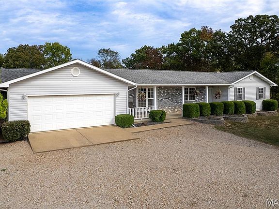 Located in Bonne Terre, Missouri, this 5-bedroom, 3-bath, 2,184 sq. ft. home sits on 20+/- unrestricted acres within the Central School District. The property offers a functional layout with open living areas, a wood-burning fireplace, and a kitchen with ample cabinet and dining space. The home has a 2-car attached garage and an unfinished walk-out basement suited for future expansion if desired. Outside, a heated in-ground pool provides year-round use. A detached barn is equipped with electric and water and includes horse stalls, workshop space, and lean-tos for equipment or storage. The home is equipped with an outdoor wood burning furnace to supplement indoor air and watering heating, if desired. Approximately 10 acres are open and fenced, suitable for livestock or hay production. The property features Three Rivers Creek that runs through the center, offering water access to livestock and natural scenery, a gorgeous park like walnut tree grove perfect for camping and entertainment, as well as a series of ATV/UTV trails throughout the timber. With unrestricted land use, the acreage allows flexibility for horses, farming, recreation, or additional improvements. This property provides a practical setup for those seeking usable acreage, livestock facilities, and a well-maintained home with modern utilities in a convenient location. Average monthly utility average $300.