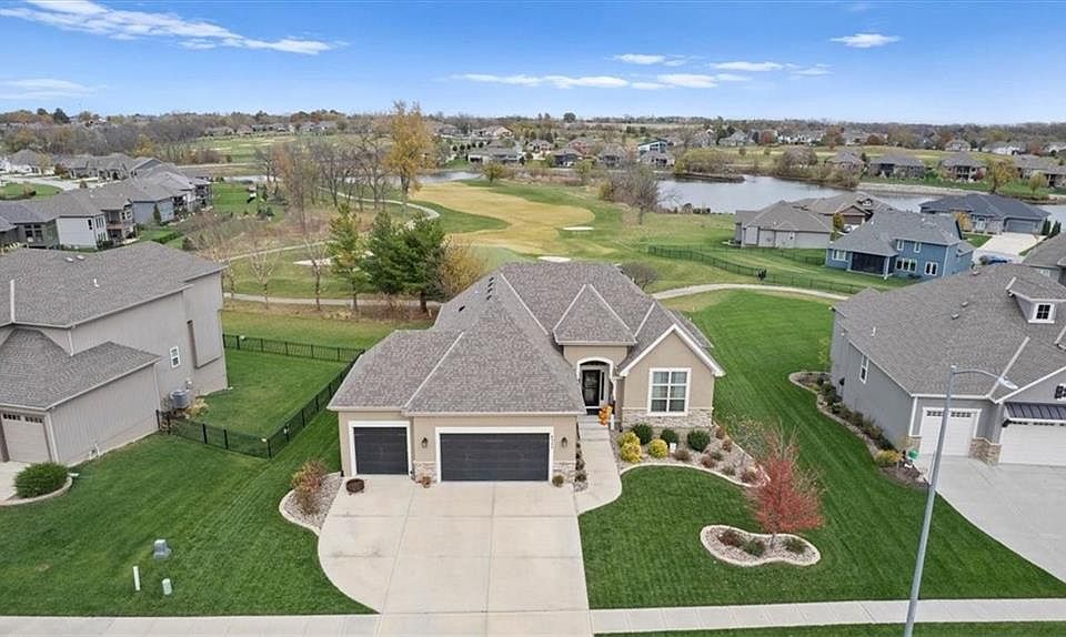 What a view!! Backs to 10th Green on walkout lot w/ see thru fireplace between Great Room and covered deck. All the expected upgrades, including gas cook top w/ downdraft vent, quartz kitchen countertops, Master Bedroom with granite and free standing tub in master bath. Master Bedroom walks out to the covered deck. Wood floor upgrade, stain grade car siding in kitchen ceiling box, front door/sidelight upgrades. Finished walkout lower level Rec/Fam Room has back walkup bar. 3rd & 4th sizeable bedrooms. Good amount of storage. a beautiful golf course community conveniently located to all parts of the city. Ten minutes to The Legends Shopping, Dining and Entertainment area, The Kansas Speedway and Sporting KC. Just 30 minutes to the Airport, Downtown and even to Lawrence! Acclaimed Basehor-Linwood Schools.