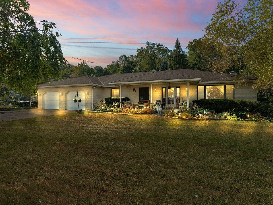 Welcome home. This Beautiful Custom-built brick Country home sits on 4.23 acres half are wooded. It boasts solid 6 panel oak doors, solid oak flooring throughout, along with oak cabinetry. Additionally, 2 car attached garage, a detached 24x24 2.5 car garage and a 24x30 detached building. This open plan Kitchen, dining and family room have French doors leading to the 4-season sunroom. Enjoy the serene deck, perfect for observing wildlife or taking a swim. This home offers an abundance of features and opportunities for relaxation and enjoyment.