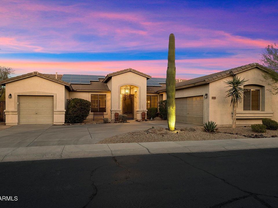 Freshly Painted and a NEW Price! Entertainer's dream home! Gorgeous and move in ready in the gated golf community of Dove Valley Ranch, this 4 bd/3 ba features a desirable split floorplan with an open living concept. Home boasts an unbelievable outdoor living and entertaining space with a gorgeous sparkling pool, jacuzzi spa, built in outdoor kitchen, a fire pit, a putting green, artificial turf and even an outdoor shower. The primary suite features an updated spa-like bathroom with a wonderful shower and generous walk-in closet all with access to the resort-like backyard via sliders. Other features include a guest area with a clever jack and jill bathroom, a fourth bedroom which is currently used as an office and a well-placed 3 bathroom for easy access from the pool and a 3-car garage. All of this is situated on a premium lot that is separated from neighbors by NAOS for added privacy. Updated pool equipment and NEW HVAC augment solar panels for very low monthly energy costs. Close to golf, shopping/dining, hiking and freeways.