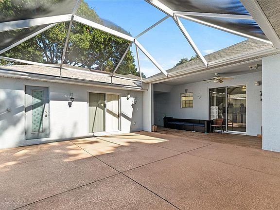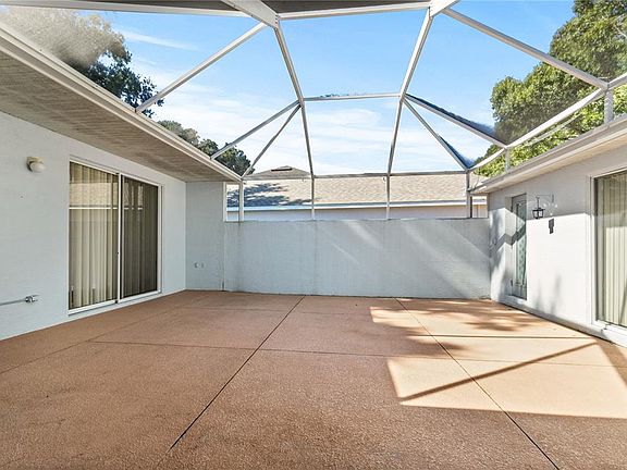 Welcome to Kings Ridge, a vibrant 55+ golf course community offering resort-style living with endless amenities! This community is centrally located with shopping, restaurants, and medical less than 15 minutes away; theme parks and downtown Orlando 30 minutes and Orlando Airport is 45 minute drive. This inviting 2-bedroom, 2.5-bath St Ives model home includes a versatile office that could serve as a third bedroom. Enjoy a relaxing day/evening in your own private atrium — a perfect retreat for soaking up the sun or nurturing your favorite plants. Recent upgrades include new ceramic plank flooring, freshly painted interior and new appliances. The guest suite offers comfort and privacy with its own walk-in closet and bathroom, while the open living and dining area creates a bright, welcoming flow. The washer and dryer are included, and exterior painting is scheduled for 2026 (covered by the HOA). Kings Ridge features 3 pools, saunas, hot tubs, ice bath, 2 gyms, tennis, pickleball, bingo, “mingo,” billiards, game rooms, a library, ballroom, and so much more! Come make this beautiful home and active community your new lifestyle. HOA fees include free internet, telephone, cable tv, yard maintenance, irrigation and exterior painting.