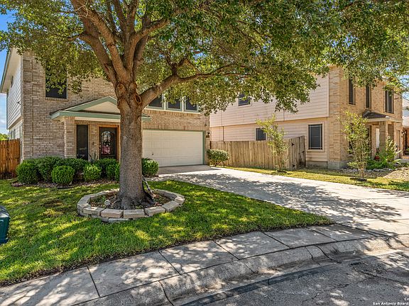Beautifully updated 2-story home in NE San Antonio! Features include fresh paint, a remodeled kitchen with granite counters & stainless appliances, and spacious living areas. Upstairs offers a large primary suite plus versatile flex space. The front yard has brand-new grass, while the backyard is ideal for entertaining with mature trees, a covered patio, and an above-ground pool. Roof replaced April 2022 and AC installed in 2020. Conveniently located near schools, shopping & major highways.