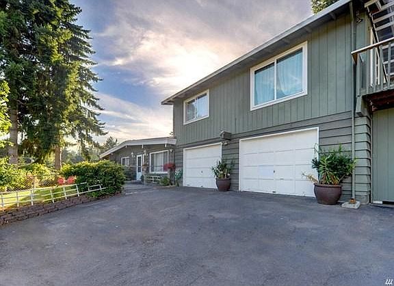 TWO IN ONE! This is a versatile duplex that could be used as one unit as well. 1) The main unit has 3 bedrooms, 1.5 bathrooms, 2-car garage, a huge driveway, a fully fenced backyard and a fully fenced front yard. 2) The second unit has one large bedroom, walk-in closet, one full bathroom, a kitchenette, a big living room, a deck/porch, a huge storage space and a partially fenced yard of its own. The two units virtually don't share a wall, so noise penetration is not a problem. The units have been recently remodeled. Updated kitchen with oak cabinets ,fresh paint , new floors, double pane windows and much more. LOCATION, LOCATION, LOCATION The property is located in a quiet neighborhood (6 minutes) between I-5 and Hwy 167. Easy access (25 min) to Seattle, Bellevue. A big family, two families, mother-in law situations, two couples sharing, living in one unit and subleasing the other, living in one unit and AirbBnB the other - are all possibilities with this property! For further information or showing, please text or call Shawn at (425) 298-6059. For a faster response, text is preferable. First month, last mont and a security deposit