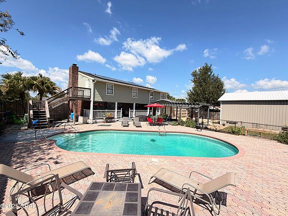 The master suite offers private deck access overlooking the pool a perfect blend of indoor/outdoor living. Located minutes to Sheffield Park, Walmart, Publix, schools, boat ramps, and only 20-25 minutes to Panama City Beach.