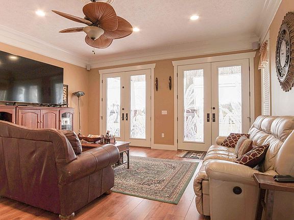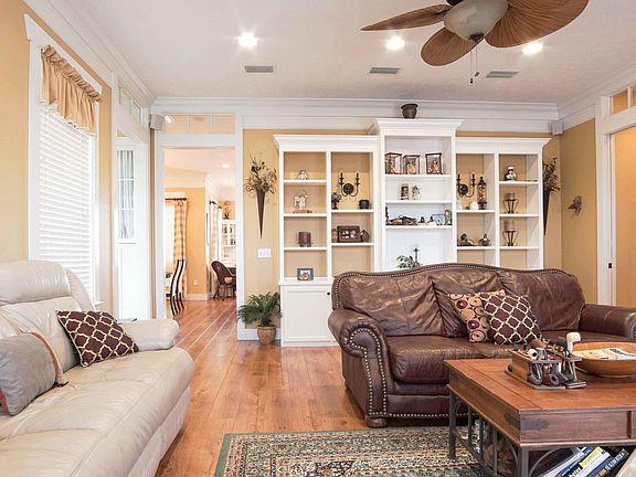 'CURRENTLY UNDER CONTRACT, SELLER WILL CONSIDER BACKUP OFFERS' Must see Southern Living style home with wrap around verandas, 3 car detached garage, portico and boat/rv storage on almost an acre. Inside the kitchen is a cook's delight with and island, breakfast bar, abundance of cabinetry and counter top space, plus a pantry. Appliances include a large gas stove with two electric ovens, range hood, built in microwave, dishwasher and fridge, plus a reverse osmosis at sink filtration system and Culligan soft water system. The dining area is adjacent to the kitchen allowing for true southern style dining. The living room features built in cabinetry and double etched glass doors that open on to the front veranda. The primary bedroom and ensuite with oversized closet is sure to impress. Enjoy relaxing afternoons on the verandas with family and fiends. The three car garage features space and a half bath. So many possibilities with the three car garage as one of the bays is behind the two car section. The backyard is generous and has a covered boat/rv storage. Home is on septic and well, utilities will be nominal. The location is convenient to schools, Winn Dixie and the new Publix on 231. The ramp will convey if needed otherwise, it will be removed and taken with the seller. Buyer to verify measurements if important.