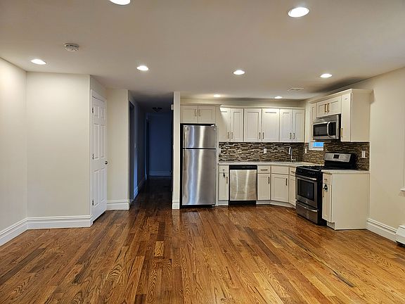 Fully renovated 3 bedroom/ 2 baths unit on the 1st floor of a 2 unit home. The apt features new hardwood floors, updated kitchen with stainless steel appliances and stone countertops, updated bathrooms with a jacuzzi tub, and a large living room. Primary bedroom has it's own bathroom. All tenants must be pre-screened. Landlord lives on the 2nd floor. Tenant will not have access to the backyard, and must park on the street. Neighborhood has plenty of parking.