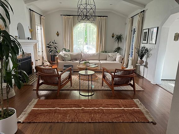 Wow! Welcome to a stunning 1932 Historic Architectural Home with a distinctive Spanish Colonial design and Art Deco highlights on a beautiful, quiet, tree-lined street. Once inside this spacious 3 bedroom, 2 bathroom home, elements of hardwood floors, arched doorways/window, original tiling, sunlit rooms, a cozy wood-burning fireplace, and more combine to create an elegant and warm feeling. The property comes with an abundance of usable outdoor space--from a large front yard and private gated porch, a side yard that comes with custom-built keyhole vegetable garden beds catching prime south-facing sunlight, and a spacious backyard with deck makes this property a hidden oasis from the bustle of the city! This property is walking distance to coffee shops, restaurants, Leimert Park, and the Leimert Park Metro stop! It is conveniently located a short drive from Culver City, DTLA, Playa Del Rey, Marina Del Rey, and Venice. The property includes central AC/Heat, upgraded appliances including a refrigerator, dish washer, microwave, stove, and full-sized washer and dryer in a separate laundry room with storage. The property is also wired for fiber gigabit internet, security system, and includes a Ring doorbell/Ring camera. Each room has a 1930's style walk-in closet. The property also features a dedicated laundry room and breakfast nook. Come experience all this home has to offer!