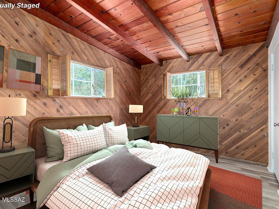 Seller is VERY MOTIVATED, will entertain ANY and ALL offers. This is where mid century meets modern. Spectacular Bungalow in the Garden District, close to shopping, restaurants, hospitals, a very short walk to ROADIES and the Tucson Botanical Gardens and with easy access to I-10. This home is truly one of a kind. It has been lovingly cared for and updated all while keeping the original charm this era has to offer...Wood beamed ceilings, wood Chevron pattern paneling. Recently installed AC/ New HVAC, NEW electrical panel, whole house Surge Protector w/ new inside sub panel, updated kitchen, all new appliances, updated the bathroom, painted inside and out, all new flooring and new window coverings in several rooms. This home is situated on a large lot with room for a pool or an ADU with