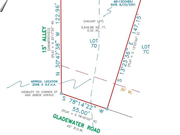 Vacant R-7.5a zoned residential lot, total of .23acre 9,947sqft, mostly flat, few trees, has road frontage public access and city utilities. Part of lot sits in floodplain - priced accordingly. Survey in hand, clear title and ready to close.