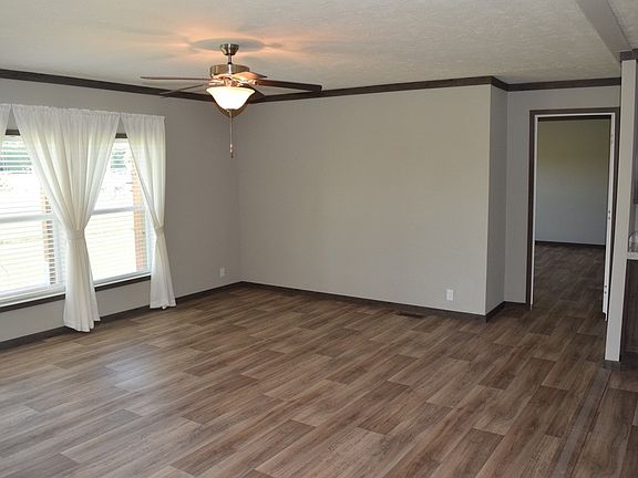 Well maintained 1680 sq ft manufactured home on 2.17 recently subdivided acres with a 19 x 9 covered front porch and 24 x 24 single car attached carport. This open concept home is carpet free featuring a large living room with an eat-in kitchen/ dining combination. Stainless appliances in the kitchen remain as do the washer and dryer in utility. Utility room has a pass through cabinet to the primary bath as well as ample built in storage and mop sink. The primary bedroom suite has a large walk in closet, double vanity in the bath, as well as a tile shower. Home also has large 2nd and 3rd bedrooms both with walk-in closets. Home has 2x6 exterior walls, 33-19-11 insulation package and is a full finish drywall hybrid (not in closets or utility).