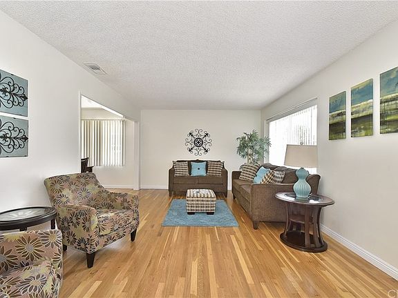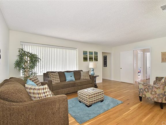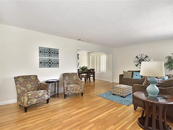 This well cared for home is located on a well maintained tree lined street in the Lakewood Mutuals. Featuring a large bright open living room & dining area. Bright kitchen with natural wood cabinets, eating area, recessed lighting plus oven, new microwave, dishwasher & refrigerator included. Enlarged master bedroom with double closets & full bath with sunken tub & shower. Full hall bath with tiled stall shower & separate tub. Newly refinished oak hardwood floors & fresh interior paint. Central Heating & A/C. Large Inside laundry room which could be nice home office & relocate laundry to laundry room off the kitchen. Private back yard. Front sprinklers. Long driveway leading to a 2 car detached garage. Close to schools, shopping & freeways.
