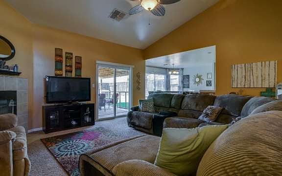 Gorgeous home located in the southwest neighborhood called The Woods. It has 4 bedrooms and 2 bathrooms and is 1,916 sqft on a 6,670sf Lot! Spacious living room w/ cozy fireplace, open kitchen with appliances overlooking the kitchen nook, open floor plan with tile and carpet throughout and custom paint. Nice size backyard with plenty of room for family and friends.
