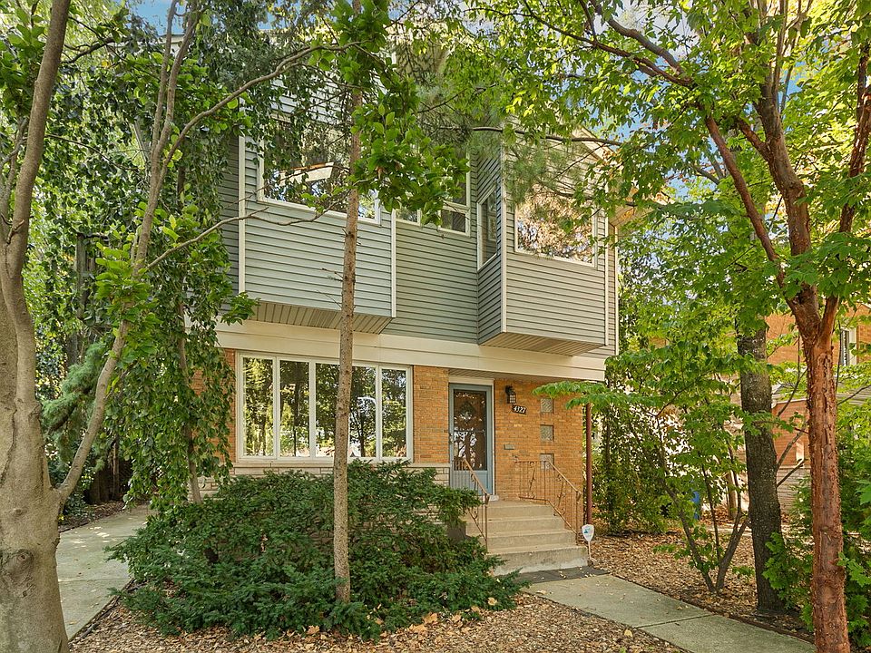 Welcome to this stunning 4-bedroom, 3-bath home nestled on a peaceful lot surrounded by mature trees. Offering abundant living space, this home is perfect for anyone who values room to spread out. As you step inside, you're greeted by a cozy, sun-filled living room. The large eat-in kitchen features ample counter and cabinet space, along with an adjacent dining area, ideal for everyday meals or entertaining. The main level includes two generously sized bedrooms and a full bath. Upstairs, retreat to your expansive primary suite - truly a private oasis. This oversized bedroom boasts vaulted and beamed ceilings, two walk-in closets, a sitting area, and a private balcony. The luxurious en-suite bath is finished in marble and features a whirlpool soaking tub and separate shower. The second upstairs bedroom is equally spacious, with vaulted and beamed ceilings and its own private balcony. Multiple skylights on the second level flood the space with natural light. The partially finished basement offers even more living space and is ready for your finishing touches. It includes a full bath, laundry area, and plenty of room for storage, recreation, or a home office. Enjoy the outdoors in your private backyard, which feels like a secluded retreat despite being conveniently located in the city. Surrounded by ornamental and mature trees, it's the perfect spot to relax or entertain. Additional features include a detached 1-car garage, dual HVAC systems for year-round comfort and plenty of hidden storage spaces. Unbeatable location - close to parks, grocery stores, restaurants, public transit, and more. Don't miss your chance to make this exceptional home yours. Schedule your tour today!