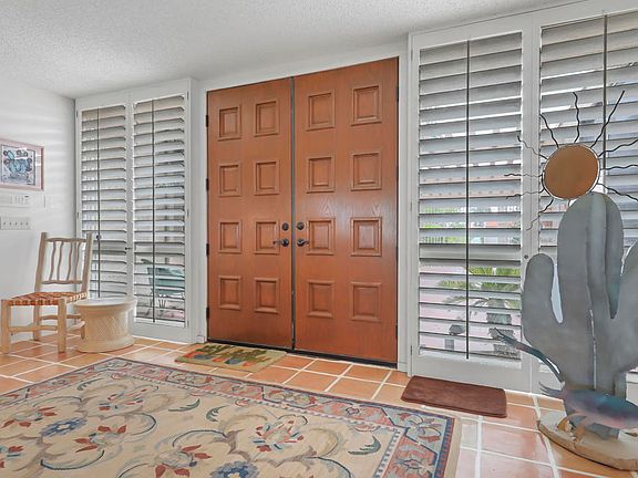 Great value for a 3/3 condo - ready for that special owner!! Enter thru gated courtyard with soothing fountain to a large great room with cozy fireplace and sweeping golf course/mountain views!! Kitchen has been tastefully updated with granite counters, newer cabinets and appliances (double ovens, electric cooktop). Shutters throughout! Saltillo tiles in entry/kitchen and all three bathrooms. You will enjoy the wonderful mountain and golf course views from the expansive rear patio with automatic shades and gas BBQ. Spacious master and guest bedroom each with a slider to the center courtyard, afford a bright open feeling. The third bedroom has been used as a den/office, but has a bi-fold shutter door and a sofa bed in case you wish to use as another bedroom. Attached 2-car garage plus separate golf cart garage. Close to two pools and tennis & pickle ball courts. IID for lower electric. HOA of $210 includes 24-hour guard-gated security, plus cable TV with two boxes with Showtime/HBO/Cinemax plus internet with Spectrum. Montego West HOA of $632 includes exterior maintenance (incl roof - no wood overhangs), trash, pools/spas, gardening, insurance (bare walls).