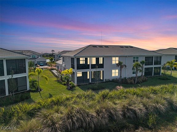 Welcome to this stunning Baycreek coach home offering over 2,000 sq. ft. of beautifully designed living space, featuring 3 spacious bedrooms, 2 full bathrooms, and a 2-car tandem garage—perfect for two vehicles plus your included newer golf cart or extra storage! Situated on a quiet cul-de-sac and just a short walk to one of the community’s satellite pools, this home offers both privacy and convenience. Step inside and upstairs to a bright, open great room design adorned with elegant finishes. The interior showcases tile flooring in the main living areas, plush carpet in the bedrooms, modern paint tones, sleek white shaker-style cabinetry, granite countertops, and stainless-steel appliances—all complemented by upgraded lighting fixtures. Enjoy effortless entertaining in your expansive kitchen, welcoming family room, or out on the screened-in lanai, where you’ll be captivated by one of the most expansive preserve views on the street—a rare find among coach homes! The guest bedrooms offer great flexibility—ideal for home offices, hobby rooms, or creative spaces tailored to your lifestyle. This home includes a social membership, giving you access to an array of resort-style amenities. The championship 18-hole golf course is public and available to play for a fee, so you can enjoy the game whenever you wish. Additional amenities include a resort-style pool with lap lanes & spa, tiki bar, pickleball and bocce courts, state-of-the-art fitness center, tennis center, and a clubhouse with dining. Beyond your doorstep, Founder’s Square offers the perfect social hub—featuring food trucks, live entertainment, markets, and music every weekend! Your neighbors are waiting—come experience the vibrant Babcock Ranch lifestyle for yourself!