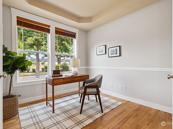 FIRST time on the market since new! This gorgeous home sits on the 5th hole on The Links at Hawks Prairie Golf Course. You'll have a lovely view of Mount Rainier, too! This home boasts 4 bedrooms, 2.5 bathrooms, a bonus room, an office, & a separate dining room! There's no shortage of space! On the main floor you'll find a large, open concept living room w/eat-in kitchen, a dining room, half bathroom, & office. Upstairs, you'll find 3 bedrooms, a full bath room, a bonus room, laundry room, & the primary suite complete. The primary suite features a gas fireplace and balcony that has incredible views, as well as a large 5 piece bathroom & huge walk-in closet. Don't forget the 4-car garage! You don't want to miss this one!