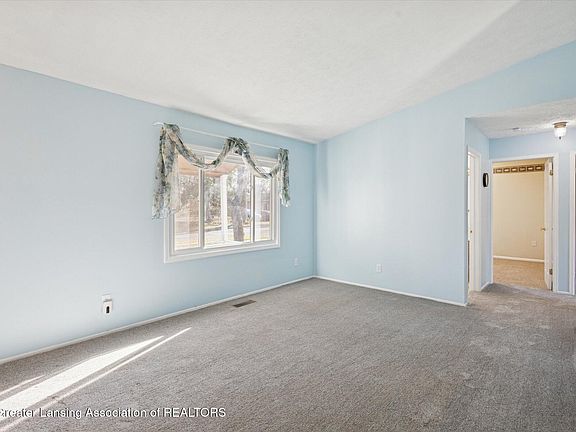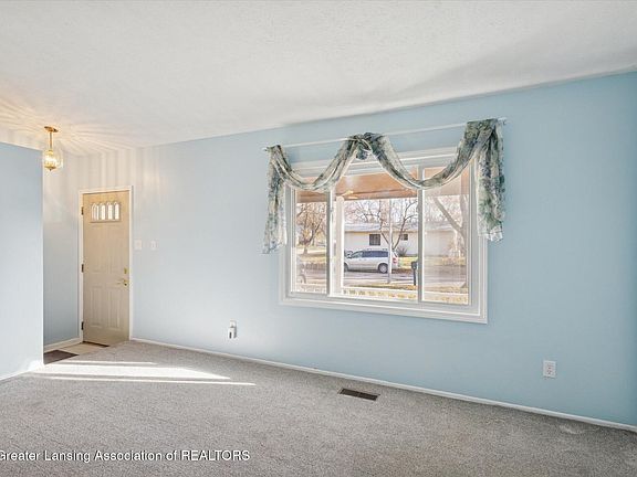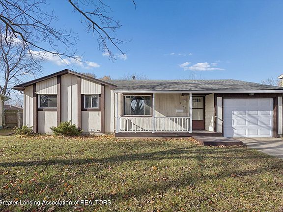 Welcome to this 3-bedroom, 2 bath ranch in Southwest Lansing with a one car garage and central air! Nicely updated with fresh paint, new carpet, vinyl and kitchen. Enter through a covered front porch to the living room with coat closet, large window and pony wall that allows for more light and decorating space. The new carpet leads into the kitchen and dining area with wood floors, wood cabinets, new white appliances including a dishwasher, new black & white counters and dual stainless-steel sink. A slider in the dining area leads to the backyard deck. The family room is off the dining area and features another slider to the deck. Three bedrooms down the hall from the living room all have new carpet. The full bathroom has a tub with tiled surround, glass sliding doors, new vinyl flooring and a large medicine cabinet. The basement has a partially finished room with walls and ceiling, great for a home gym or rec area. A full bath, laundry area, work bench and plenty of space for storage complete the basement. The fenced backyard has an additional storage shed.