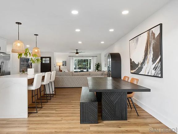 Tucked away in a desirable University City neighborhood, this beautifully updated single-story home offers the perfect blend of comfort, style, and functionality. With 3 bedrooms and 2 bathrooms, an open floor plan and breathtaking canyon views, this home is designed for both relaxation and entertaining. Inside you’ll find a warm and inviting living space where the open floor plan ensures an effortless flow between the kitchen, dining and family room, making it easy to gather with friends and family. Enjoy some quality time in the living room where large picture windows frame the backyard and capture stunning sunset views. Outside, the owners have reimagined both the front and back yards, maximizing their usability and creating welcoming spaces to unwind, entertain, or simply take in the peaceful surroundings. Additional highlights include central heat and air conditioning, an attached two-car garage, and a prime location near top-rated schools, parks, shopping, and dining. With its ideal blend of indoor-outdoor living, this home is a must-see in one of San Diego’s most sought-after communities!