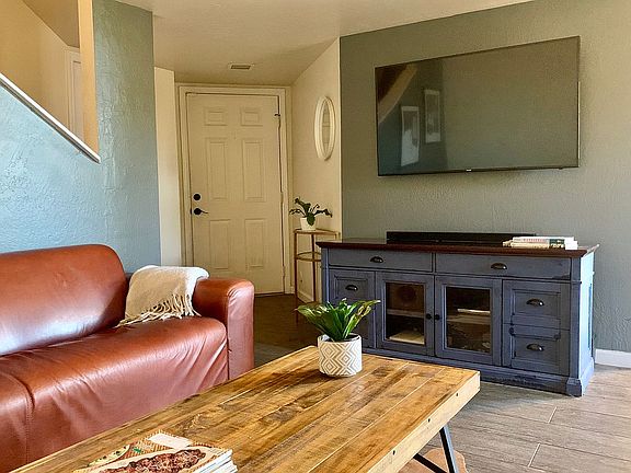 Low maintenance home in a perfect Arcadia location! Only 12 homes in this community. 2 story vaulted ceiling with large picture window gives a spacious feel. Downstairs has beautiful tile that looks like wood throughout and includes a convenient half-bath. Kitchen has been updated with Quartz countertops, backsplash and new lighting. Dual-pane windows and French door to lovely patio with faux grass, lush green ivy, and raised planters. Charming wood burning fireplace for chilly evenings. The upstairs features new carpet, two bedrooms and 2 full baths. All baths were updated with new Quartz countertops. Full size stacked washer/dryer upstairs. Master bedroom has walk-in closet and vaulted ceiling. Includes private 2 car carport with direct access to home, and convenient street parking just outside of the patio for guests. Property is vacant and move-in ready. This is a great way to get an affordable home in a great location!