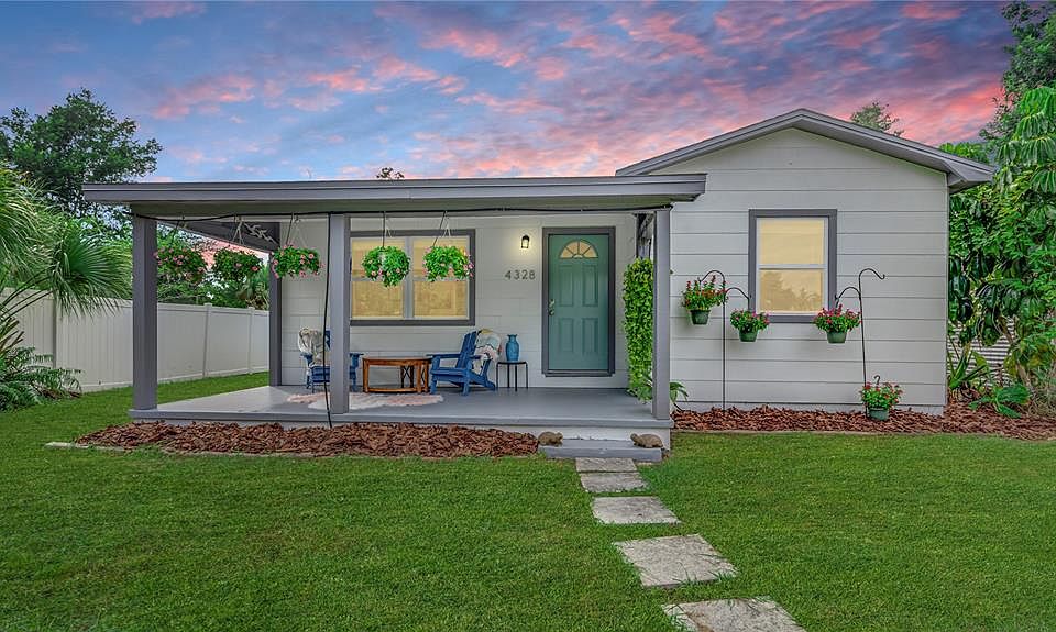 Imagine starting your morning on the wide, peaceful front porch with a hot cup of coffee, watching the quiet St. Pete street come to life. This home was designed for moments like that — relaxed, easy, and inviting. Step inside and you’ll find a space that feels both fresh and comfortable. Thoughtful updates were completed in 2021, bringing a modern touch to this charming home. The kitchen is a true centerpiece with solid wood Jarlin cabinets, granite countertops, stainless steel appliances, a custom backsplash, and a designer faucet — a blend of style and function that makes cooking a joy. The bathroom carries the same attention to detail with a custom vanity, granite countertop, designer tile, and updated fixtures. Major improvements from 2021 include a new roof, impact-rated windows, a new water heater, fresh tile in the kitchen and dining area, and modern LED lighting. In 2022, paid-off solar panels were added, lowering energy costs and making this home as efficient as it is charming. An attached one-car garage offers practical convenience for parking, extra storage, or a hobby space, keeping everything you need close at hand. This home’s curb appeal is just the beginning. Tucked on a quiet street, it offers the perfect blend of tranquility and accessibility. Whether you’re a first-time buyer or looking to downsize, this home makes it easy to imagine settling in and staying awhile. Schedule your showing today and see for yourself what makes this home so special.