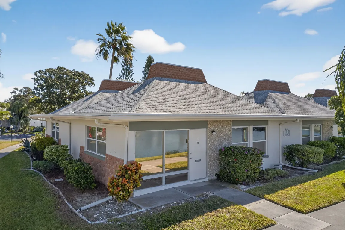 Welcome to 4328 Tahitian Gardens Circle #E, a serene corner-unit condo nestled within the gated 55+ community of Tahitian Gardens. As you enter, natural light fills the living and dining area, where a wall of windows frames peaceful water views and the manicured landscape beyond. The open layout flows seamlessly from ...