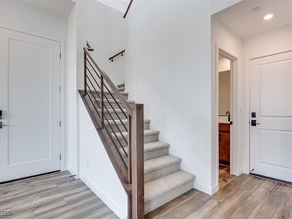 Options, financing, and closing costs incentives available. Speak to on-site sales agent for details. Beautifully modern 2 story townhome on corner lot w/ 2 car garage and 3 bedrooms, and loft in new community. Once through the entry, the home flows from one room to the next. The living area is very bright and open, with tile flooring throughout. The stunning kitchen boasts an oversized island and sleek cabinets. The primary suite is large and private. The ensuite bathroom features double sinks, and oversized shower. Relax and enjoy the private balcony off the spacious loft as well as the large backyard. The community is centrally located to, southwest, and Henderson area.