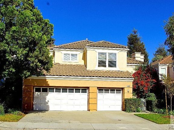 Beautiful and bright Moorpark Verona home awaits you! Two story, 4 bedrooms, 2.5 baths, approx. 2,386 square feet of interior living space. Tranquil back yard sits on an approx. 5,983 lot. Tiled entry opens to the vaulted living room with fire place. Separate Formal dining room. Kitchen boasts Corian counter tops, center island, tile flooring and opens to the family room with fireplace. Upstairs bathroom offers dual sinks with tile counters. The large master bath offers a walk in closet, dual sinks, separate soaking tub and shower. Separate downstairs laundry room. 3 car attached garage. Great opportunity to live within walking distance to the elementary school, High School, parks, grocery and restaurants.