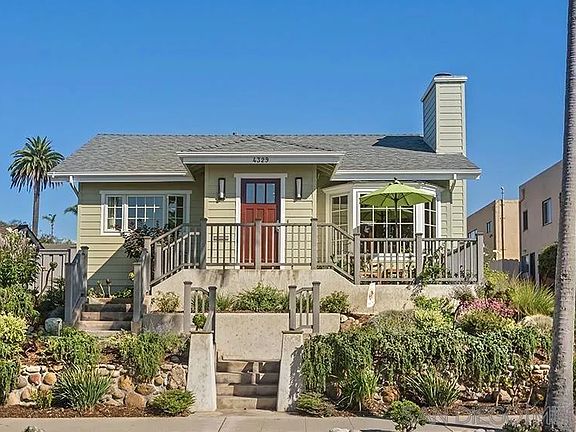 This tranquil residence is perched above the street and offers an ideal blend of vintage charm and modern amenities. The open floor plan features a west-facing bay window, a fabulous chef's kitchen with built-in office space, vaulted ceilings and multiple skylights to let the sun shine in. The primary bedroom is a serene retreat with an en-suite bath and walk-in closet. The terraced front yard and private backyard garden are low maintenance with low water plantings. This very special home has great energy!
