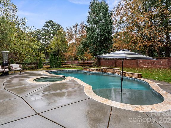 Step outside to your own backyard retreat — complete with a heated pool and spa featuring a cascading waterfall, all controlled by app or remote for effortless enjoyment. The lush yard is fully fenced for privacy, surrounded by towering shade trees, and includes a large patio and raised garden beds. This home is ideally situated close to schools, parks, shopping, dining, and major highways, offering both tranquility and convenience in one of Charlotte’s most sought-after neighborhoods.