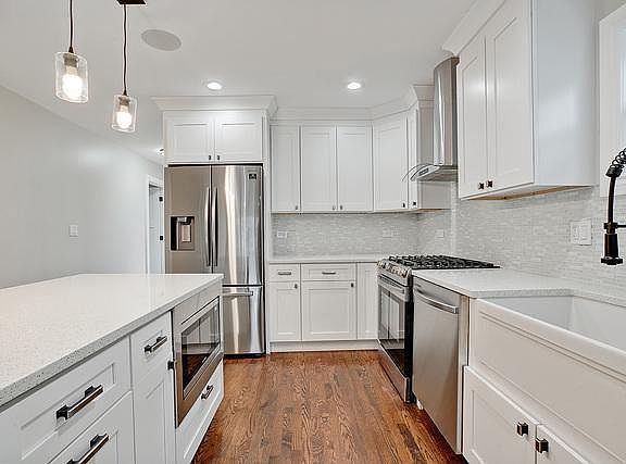 *** Brookfield *** Completely Renovated 4 Bedrooms 2 Full Bathroom Ranch Home. Walk into a Modern Open Concept first floor featuring 3 spacious Bedrooms, Newly Installed Hardwood floors, with Custom Stairs leading to Basement. Kitchen will impress you with it's White Shaker Cabinets w/ molding, Upgraded Samsung Stainless Steel Appliances w/ Hood, 5' Kitchen Island, Quartz Countertops, and Barn sink w/Garbage Disposal. Modern color scheme with Dark Bronze fixtures throughout entire home. Rear patio door will lead you to a Brand New Exterior Deck for all Summer Gatherings. Basement is no exception with over 7' Ceiling Height, waterproof Vinyl Floor, and 4th spacious Bedroom with upto code Egress Window Well. Basement also includes 2nd Floor Bathroom with Double Vanity Sink, Stand up Shower w/ bench. Laundry room includes ample space with Brand New Front Load Samsung Washer and Dryer. Smart Home features include built in Entertainment Speakers throughout, Fully hardwired for all your Cable and Internet services, Entertainment Control counsel, WiFi Controlled Nest Thermostat and Ring Doorbell. Mechanical Renovations- Brand New tear roof, Copper Plumbing, new 100 Amp electrical Service, High Efficient HVAC system, New Insulated Vinyl Windows, and Complete Drain Tile System in basement with Sump Pump to ensure dry basement. Double Lot includes a fully fenced Yard, 2.5 car detached garage, with freshly installed Kentucky Blue Grass Sod. No Corners were missed with this renovation definitely a Must See!! Home is part Lyons Township High School District and only 3 Blocks from Congress Park Metra Station.