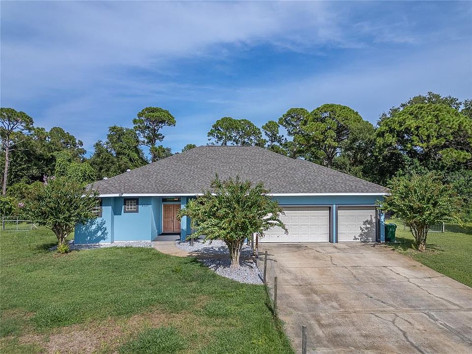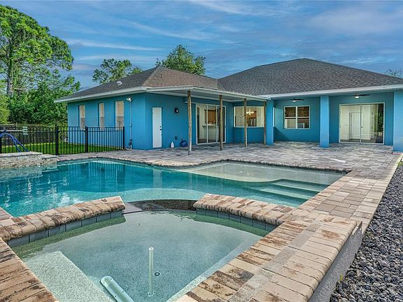 Just minutes from I-95, this stunning custom-built home sits on 1.3 private acres and offers the perfect blend of country charm, comfort, and functionality. Step inside to an open floor plan with 10-foot ceilings, formal living and dining rooms, and a spacious family room with a triple slider that seamlessly opens to the sparkling saltwater pool and spa. The large kitchen is a chef’s delight, featuring Corian countertops, stainless LG appliances, a center island, breakfast bar, cozy breakfast nook, and 42” maple cabinets with crown molding. A generous laundry room and 3-car garage provide plenty of storage and convenience. The luxurious master suite includes private access to the covered patio and pool area. The spa-like master bath boasts a walk-in shower, jetted tub, dual vanities and closets. Additional bedrooms are oversized with walk-in closets, perfect for family or guests. Outdoor living is a dream with a big covered paver patio, fenced backyard, chicken coop, and storage shed. Energy efficiency is built in with spray foam attic insulation to help keep the home cool and electric bills low. This home truly has it all—space, style, and privacy!