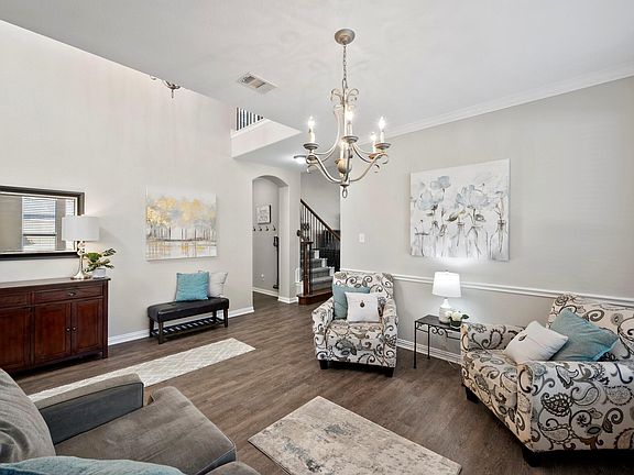 Two dedicated home officesInviting layoutProjector and screenSoaring ceilingsSpacious game roomDesirable corner lotWrought iron spindle staircase